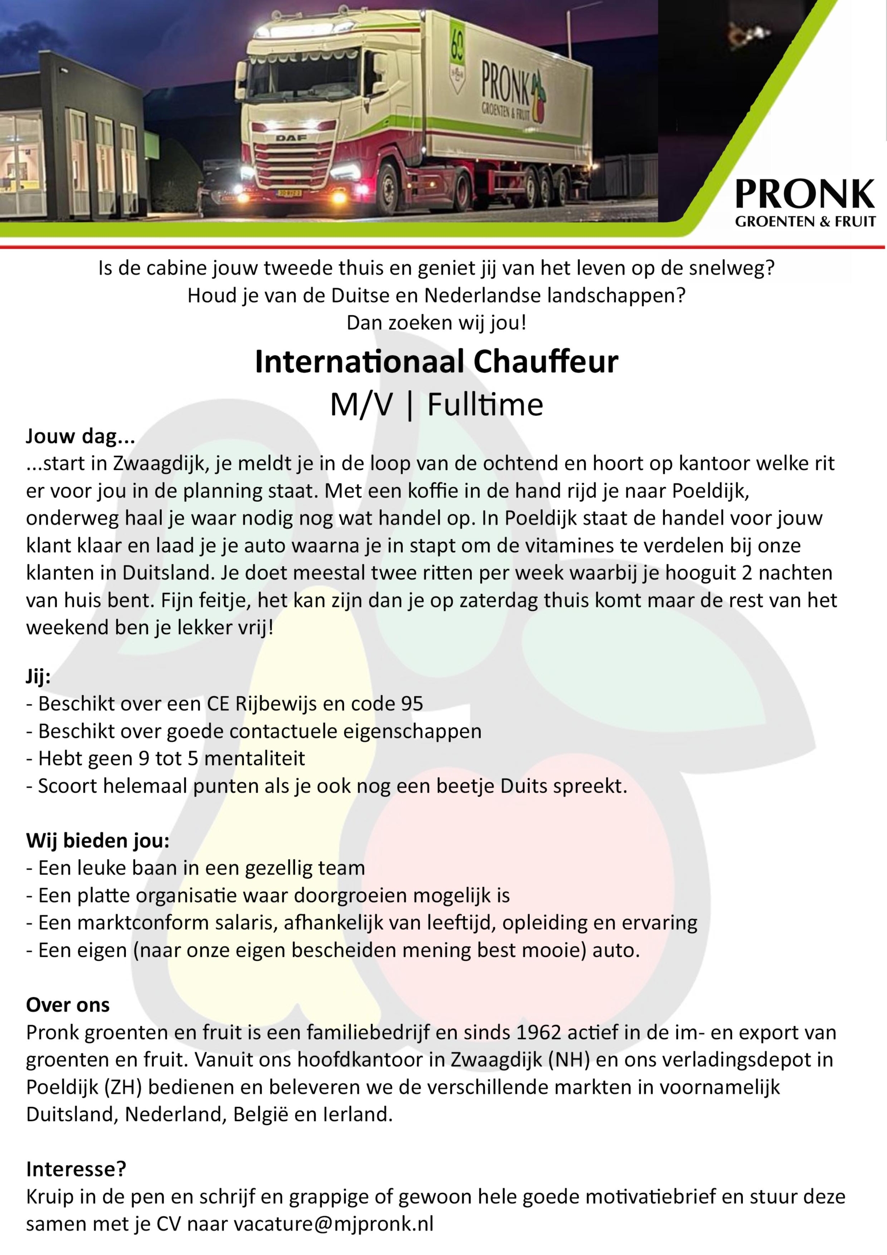 Solliciteren? Gebruik onderstaand formulier om je motivatiebrief en CV aan ons te versturen. Of stuur een email naar vacature@mjpronk.nl.